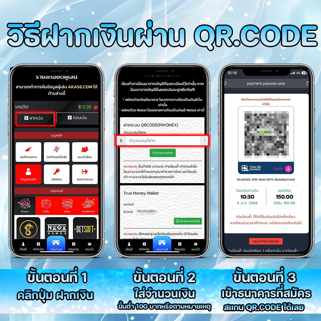 AKA56 มีระบบฝาก-ถอนทั้งบัญชีธนาคาร และบริการฝาก-ถอนทรูมันนี่วอลเล็ท ที่ไม่มีเว็บไหนกล้าทำอย่างแน่นอน เพราะเราเข้าใจสำหรับลูกค้าที่ไม่มีบัญชีธนาคารก็สามารถฝากถอนผ่าน 7-11 ได้ แถมไม่มีฝากขั้นต่ำ มีเงินเพียง 1 บาทก็สามารถเล่นได้ เหมาะสำหรับคนทุนน้อยที่อยากลงทุนเล่นเกมสล็อตออนไลน์ เพราะไม่ว่าคุณจะลงทุนเท่าไหร่ก็จะได้รับการบริการเท่าเทียมกันอย่างแน่นอน หากลูกค้าที่ฝากเงิน 200 บาทขึ้นไปก็ยังมีเล่นหมุนกงล้อฟรี 1 ครั้ง